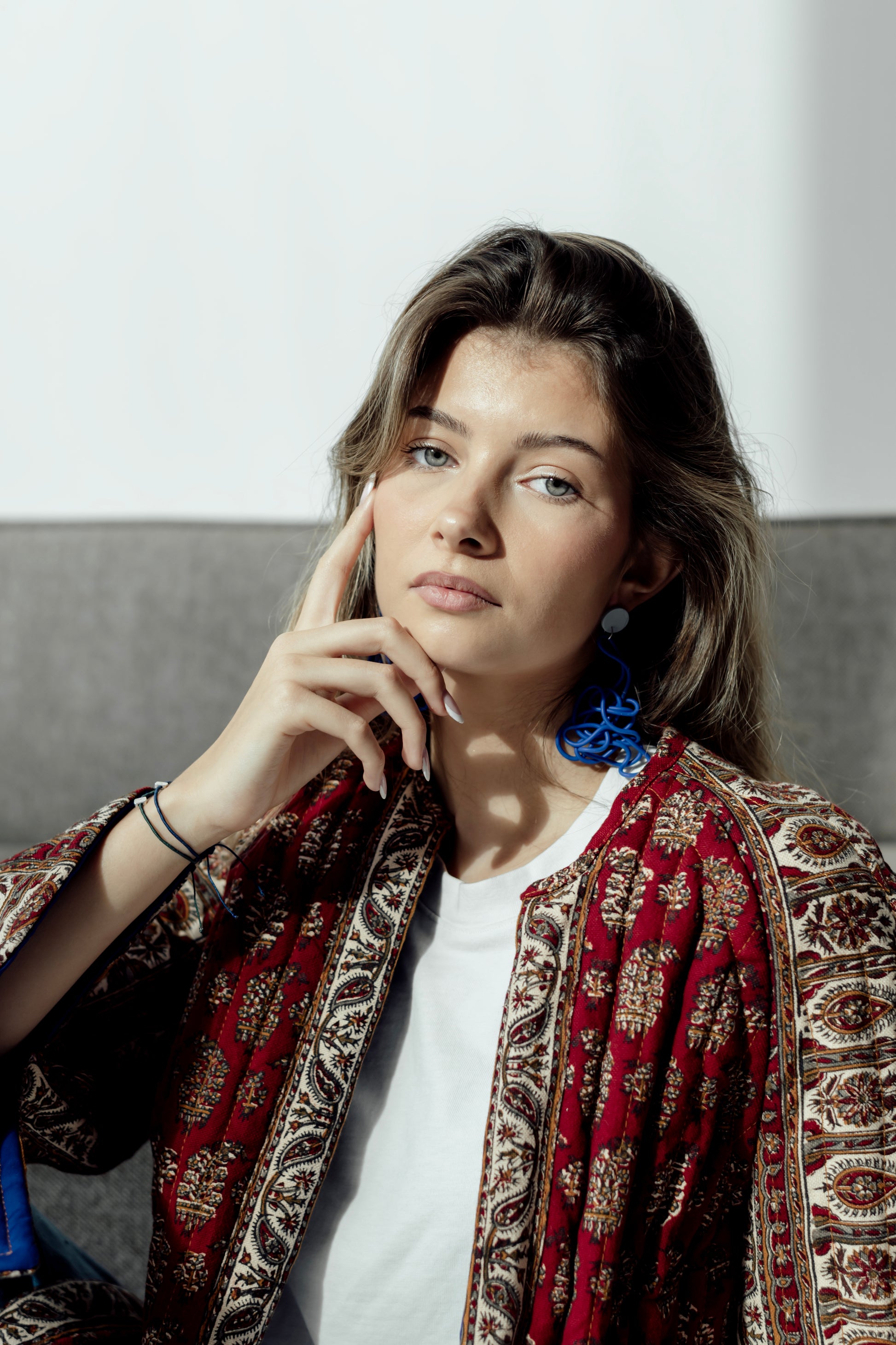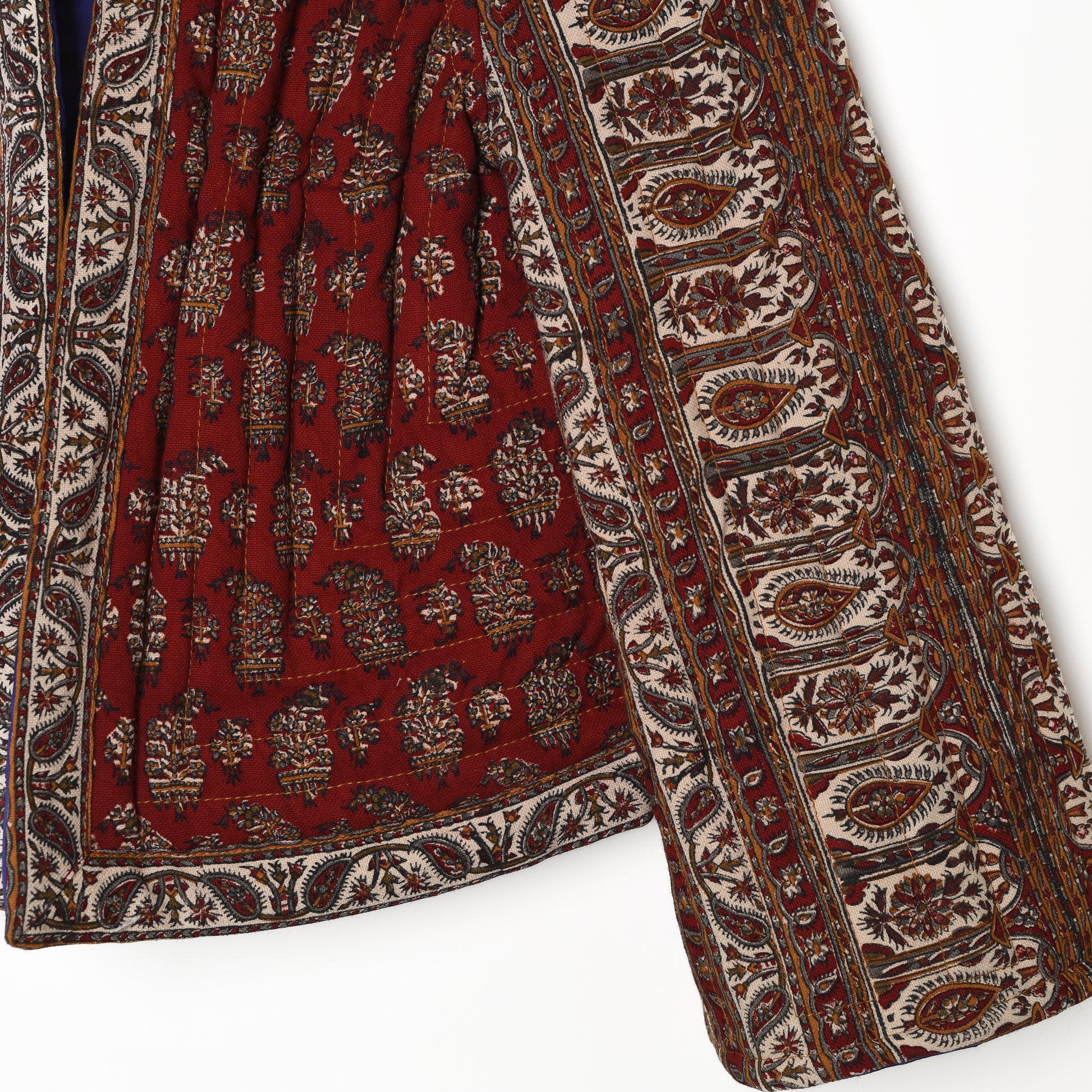 This jacket is made from traditional Persian Ghalamkar fabric, known for its intricate hand-printed floral and geometric patterns. This jacket is perfect for adding character to everyday outfits or elevating special occasions with its rich, handcrafted design.
