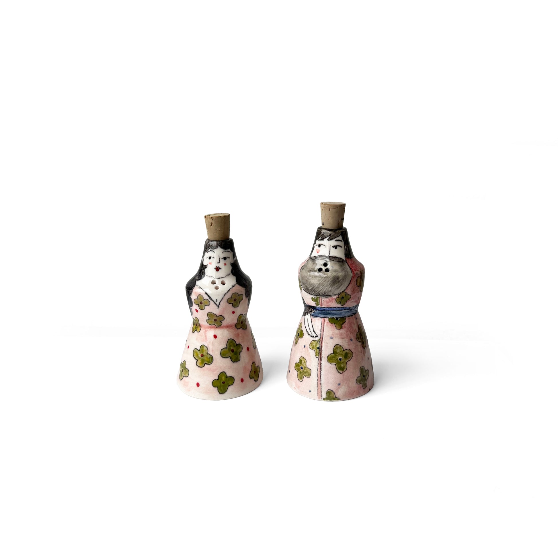 Painted salt/pepper shaker handcrafted by Laleh. Each piece is a unique work of craftsmanship by Persian artisans, created in six different shapes and colors. This salt shaker features delicate mannequin-style painting sketches that add character and charm to every piece. Perfect for bringing color and joy to your grazing board or dining table.