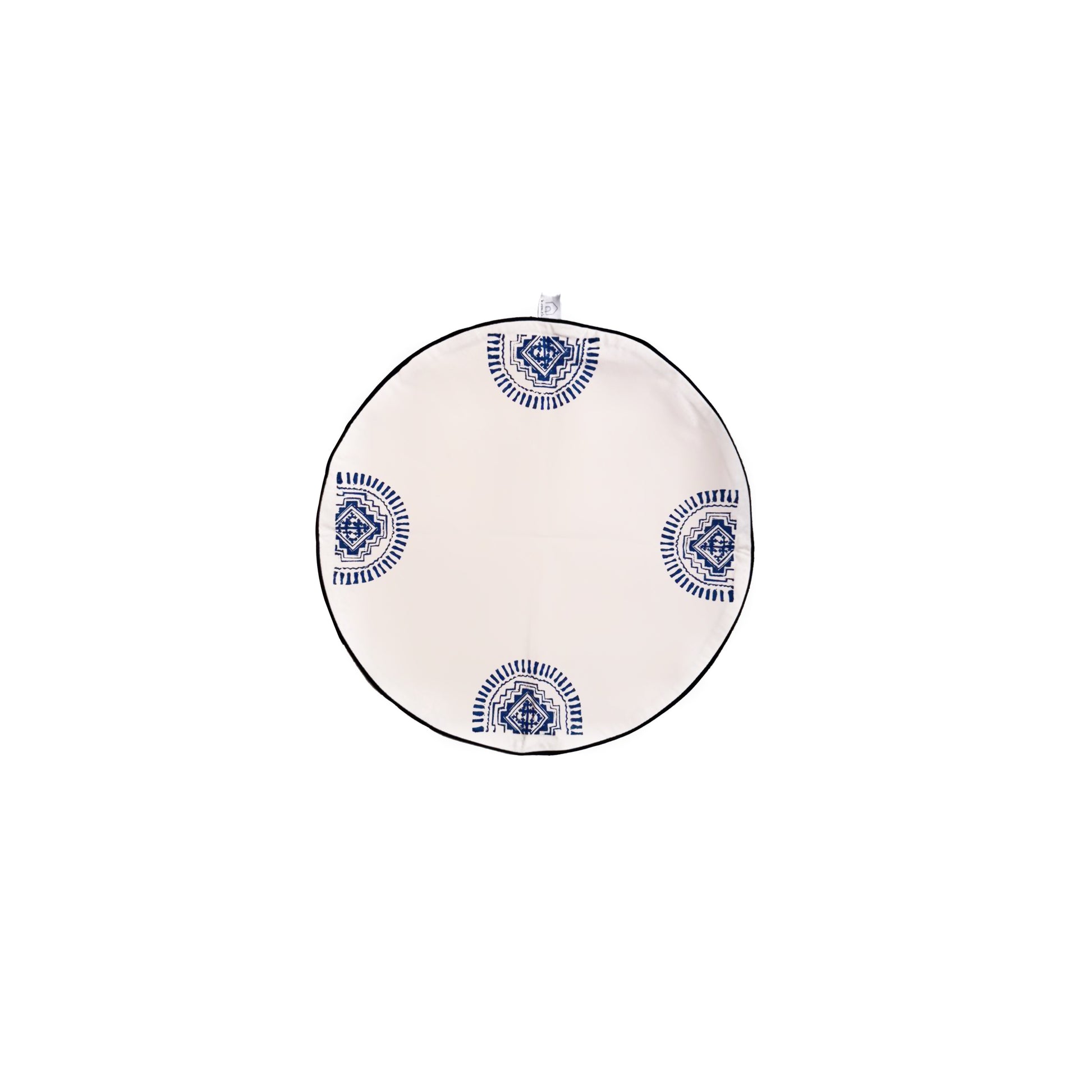 Placement by Koomeh is a beautifully hand-printed lino piece, designed to bring both style and functionality to your dining experience. It is elegantly framed with dark blue piping along the edges, adding a subtle pop of color. Each set includes two placemats, making it a perfect addition to any table setting, whether for casual meals or special occasions.