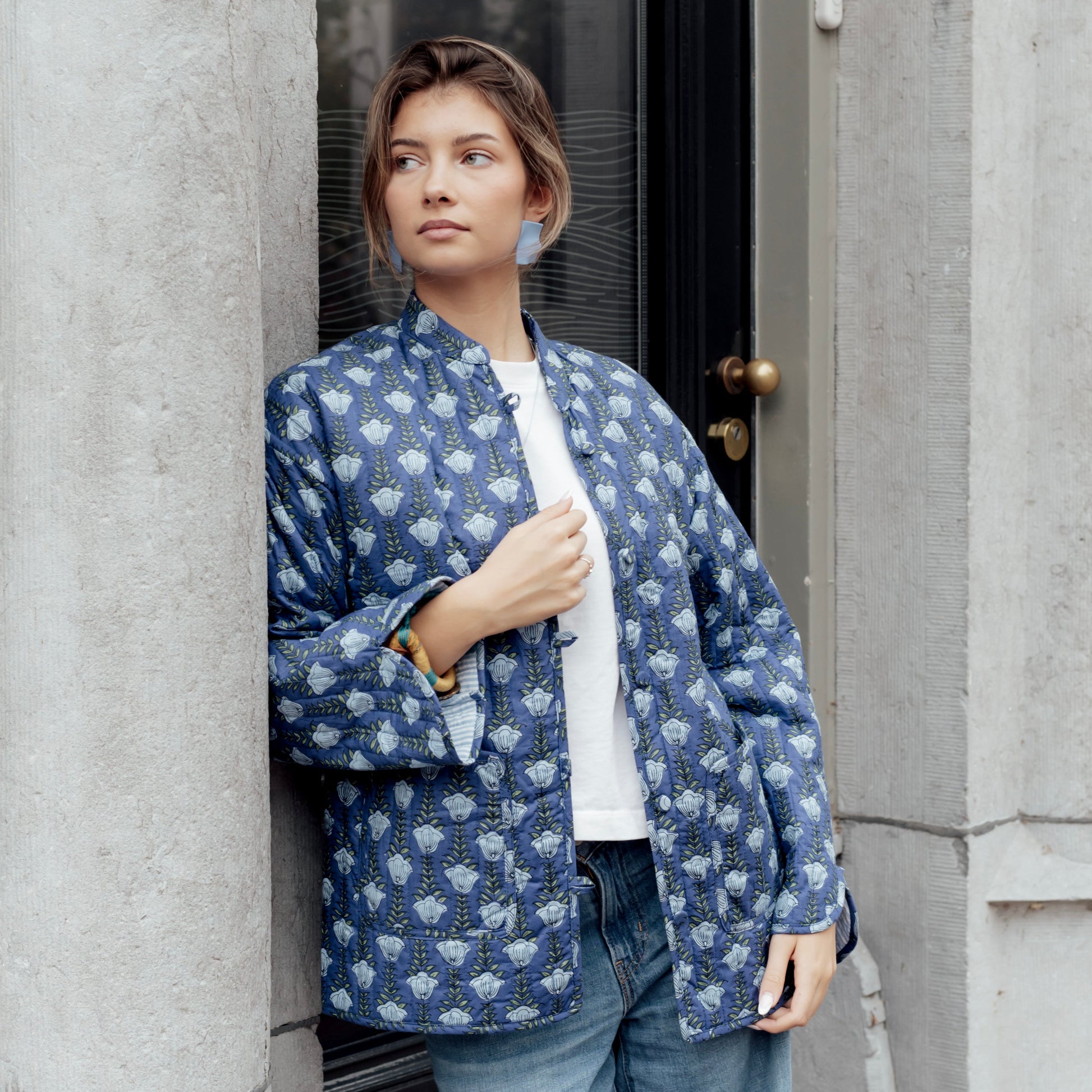 Handcrafted with care by Yaad, this jacket is crafted from three layers—cotton fabric, natural padding, and hand-stitched, hand-printed textile—making each piece truly unique and produced in very limited quantities. Fully hand-sewn in a free size, it comfortably fits EU sizes 36–42+.