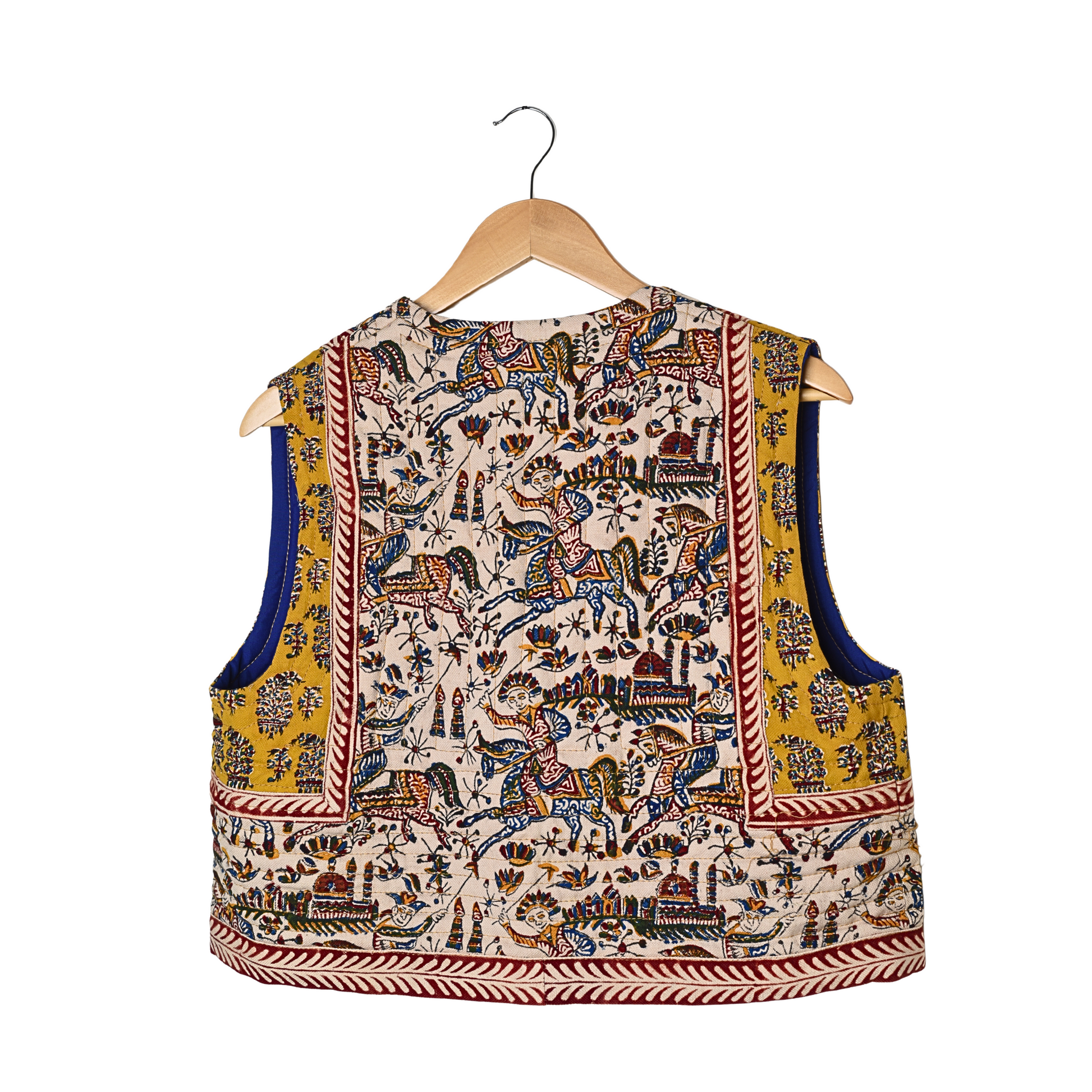 This Vest is made from traditional Persian Ghalamkar fabric, celebrated for its intricate hand-printed floral and geometric motifs. Stylish and expressive, it’s perfect for adding character to everyday outfits or elevating special occasions with its rich, handcrafted design.