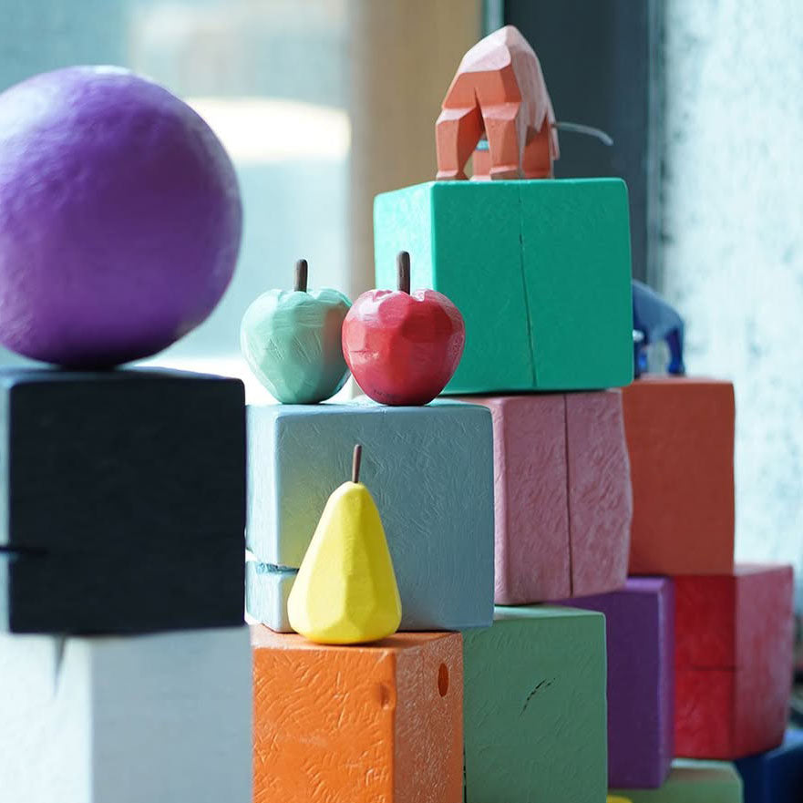 Handcrafted by Najjar Crazy, this wooden sculpture is shaped like a pear and finished in soft tones of light green. A subtle, playful piece that adds warmth and personality to any space.
